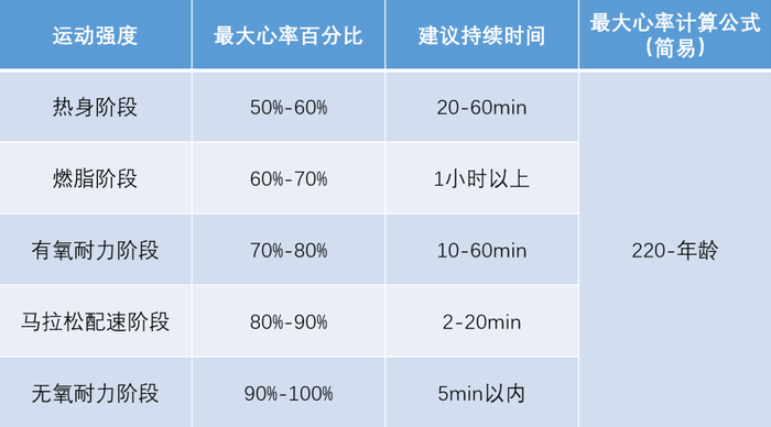 心率是用来衡量运动强度的一个常见参数,按最大心率的不同百分比可将心率分为五个区间。