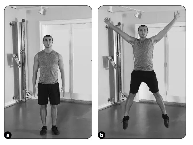 双脚与肩同宽站立,收紧核心肌群,两条腿分开向上迅速跳起,同时将双手张开举至头顶上方。迅速地跳合和跳开,重复该动作30到60秒钟。
