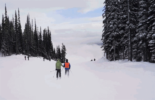 他的好伙伴詹姆斯担任了他的滑雪向导,在他身后大喊“向左转,向右转,停下来……”