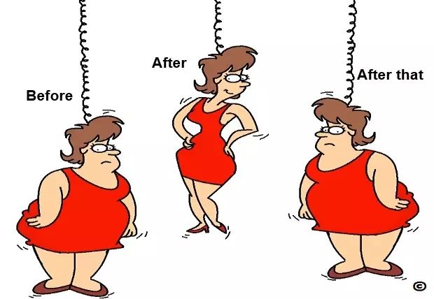 英国Channel 4电视台一个纪录片《他们真的瘦了吗?”(Did They Really Keep The Weight Off?)》,制作方找来曾经名动一时的减肥明星们,结果发现大部分当时的减肥明星都无法保持身体,复胖几乎都是最终结局。