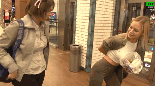 战斗民族妹子力气真不是盖的,因为使出使得对手踉跄向前的力量的时候,自身也会承受一定的反作用力,这个时候妹子还要使自身保持稳定