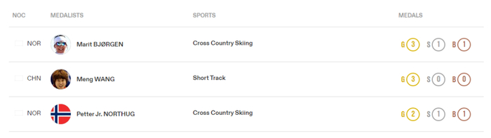 而且中国队短道速滑运动员王濛获得了三枚金牌,位居冬奥会运动员获奖排行榜第二名。