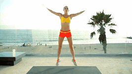 双脚并拢站直,双臂自然垂放于身体两侧,保持背部挺直,收紧腹部,然后双脚发力向上跳起,落地时双脚分开比肩略宽,同时双臂向上击掌,然后再跳起,双脚落地时并拢,同时双臂向下垂放于身体两侧。