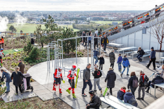 如果这些极限运动你都不喜欢,这里还有一个非常适合徒步的屋顶公园。不会滑雪的市民,可以在这里完成一次舒适的漫步。走累了,还可以在顶峰的酒吧点上一杯啤酒,欣赏周围开阔的美景。作为城市内最高的观景平台,极目远眺实属畅快。