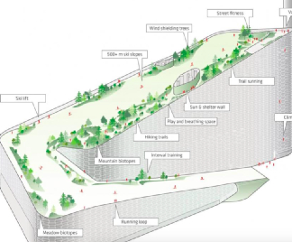 当然,世上一切美好的想象与创造都难免与挑战相伴,因为建筑内大型发电锅炉产生的热量可使地表温度高达60℃,给屋顶的雪道和植被、树木生长造成巨大难度。所以设计团队将花费大量的时间和精力,进行1:1的植被和材料测试,确保为游客提供一个适宜的气候,让他们在各个场景都能舒服的运动。