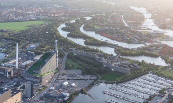 鸟瞰CopenHill所在的滨水工业区