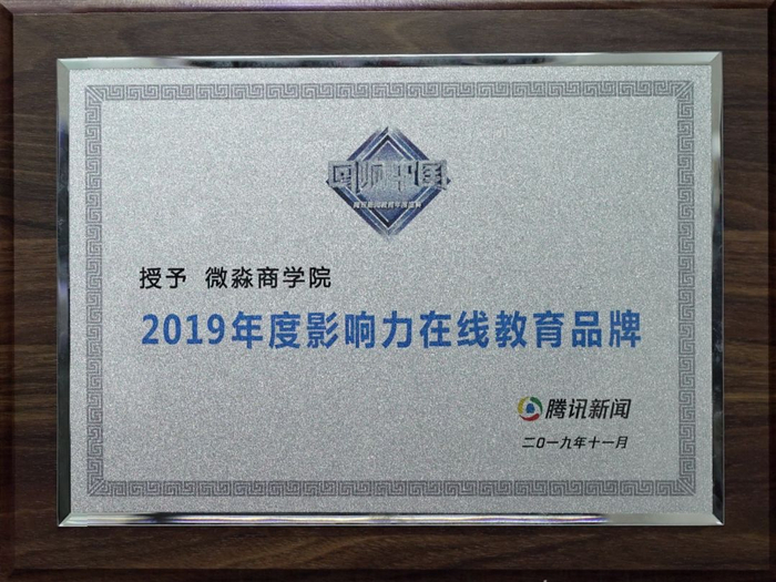 2019年底,微淼商学院荣获腾讯回响中国“2019年度影响力在线教育品牌”