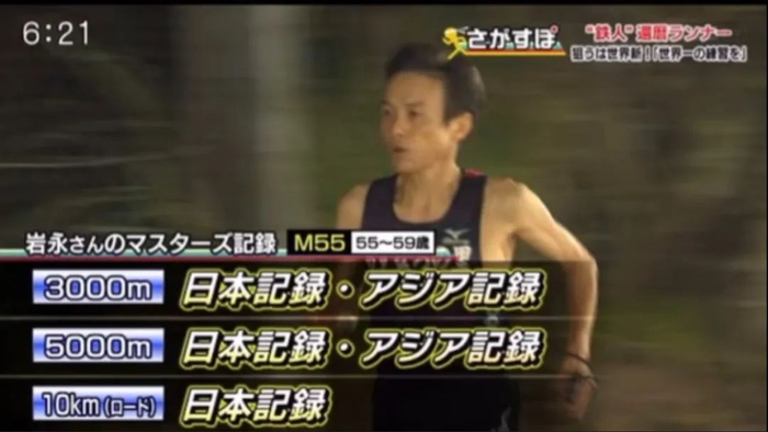 拥有超过40年跑龄的日本传奇跑者岩永义次今年已年过60岁了,近期连续打破了3项世界纪录,分别是60-64岁年龄组场地10000米(成绩33分39秒)、场地5000米和场地3000米世界纪录,让人震惊。