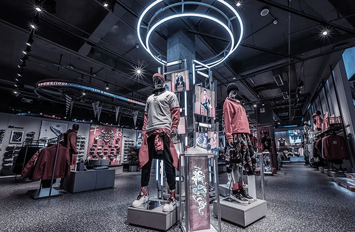 2020年,特步将部分现有零售店翻新和升级为第九代零售形象店,门店的形象、灯光、陈列、参观动线、故事包等有了全新的升级,突破了特步以往风格,融合运动、科技、时尚元素,契合年轻消费群体审美。