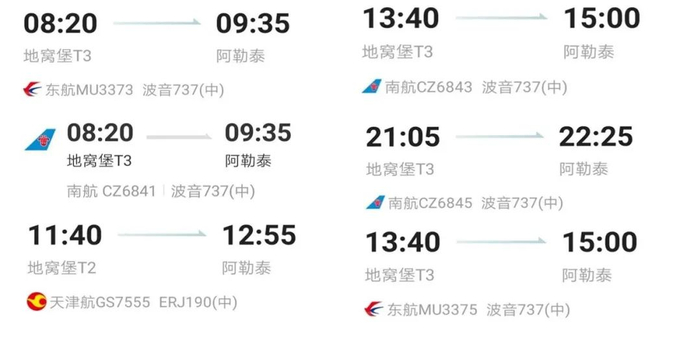 • TIP 1. 直飞阿勒泰(更多直航敬请期待)