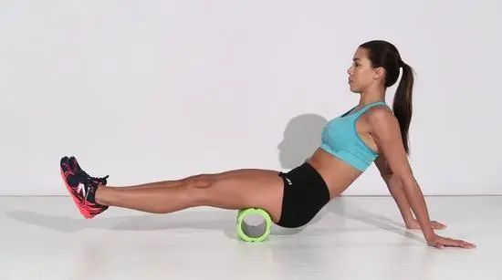 坐在地面上,将泡沫轴放置在大腿下方。双手发力将臀部抬起离开地面,然后在膝盖和臀部之间来回滚动泡沫轴。