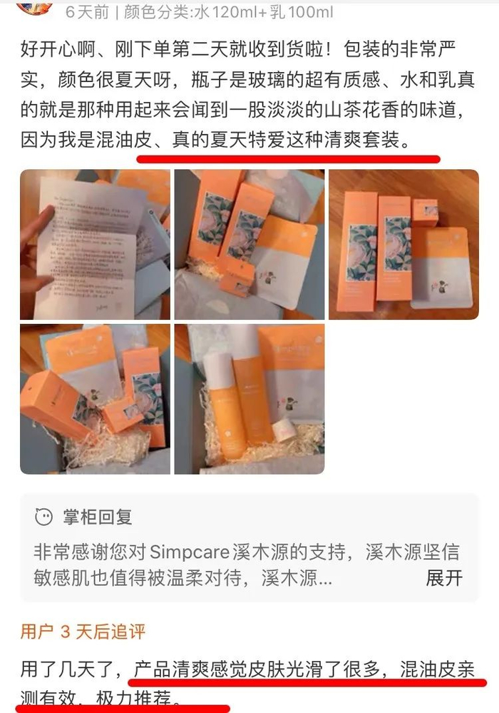 就是这套——溪木源山茶花水乳👆,我自己用空了2,3瓶,还接连种草了身边很多姐妹,(包括之前买过某大牌山茶花系列的富婆姐妹们,一致的评价是,功效和肤感都差不多),不论品牌力,颜值,成份,肤感,功效,还是超强的性价比,都让我觉得无与伦比的美好,非常适合换季时刻!!!