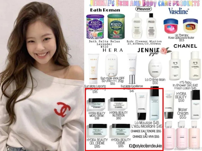 jennie的爱用品分享中,山茶花系列护肤品占三分一