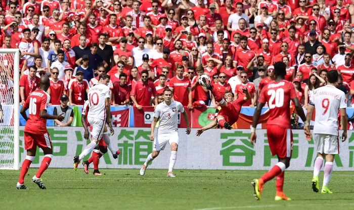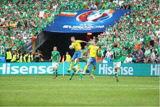 2016欧洲杯赛场上的海信广告牌