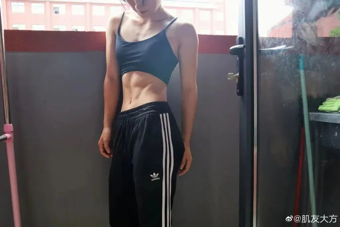 这个女生叫冯丽,1999年出生今年才21岁,因为在宿舍练出8块腹肌火爆网络。