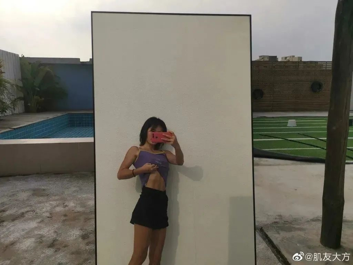 冯丽表示平时喜欢喝奶茶,吃火锅和烧烤,也只在室友上床腾出位置时练个把小时,没想到练出了8块腹肌。