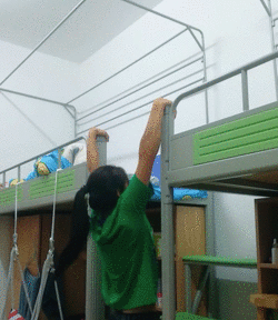 别人上床铺都得爬梯子