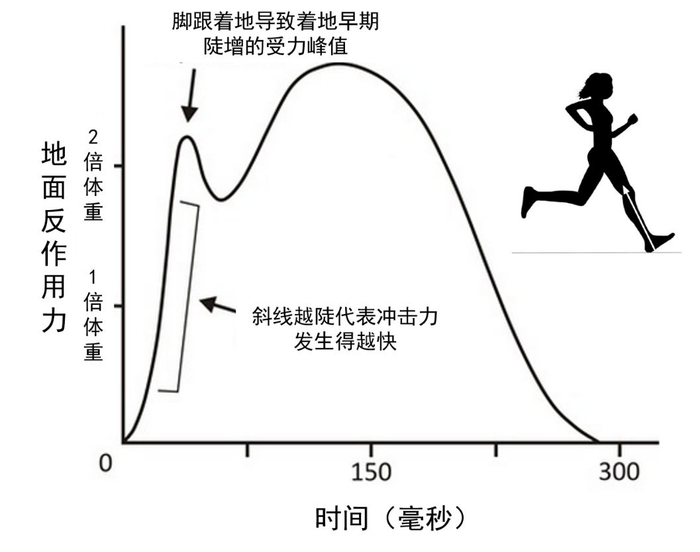 图1 跑步着地时,大约受到两倍于体重的冲击力
