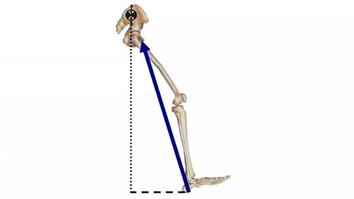 如果进一步说解释,水平虚线代表重心距离着地点的距离,这个距离过大则说明跑姿存在明显问题,造成着地点远离重心,人体受到较大地面冲击力直接作用,着地时膝关节保持伸直状态可能与两个因素有关,一是步频过慢(低于150步/分),二是甩小腿跑。
