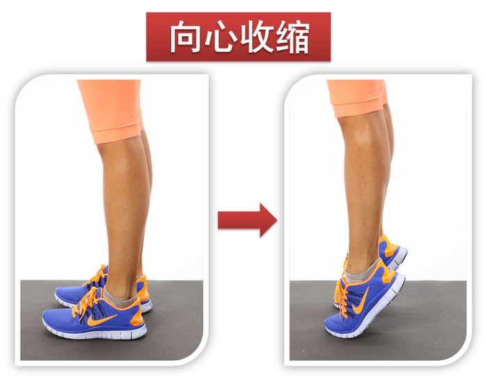 简单来说,向心收缩是指肌肉收缩产生张力的同时肌肉是缩短的,比如说提踵动作中脚跟提起的过程,就是小腿肌肉的向心收缩过程。