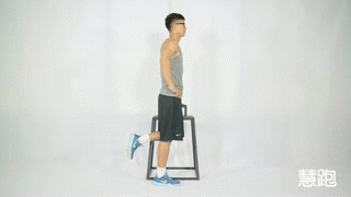 离心性提踵:提踵过程1秒,下落过程5秒左右。记得找一固定物扶住以保持身体的平衡。可进行2~3组,一组12~16次。