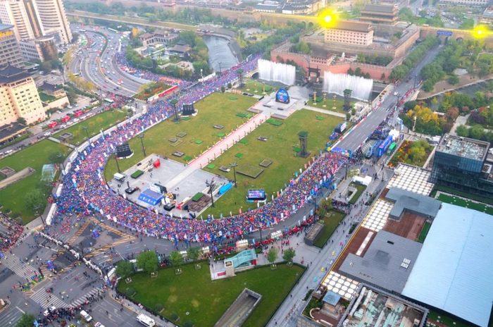 激动人心的时刻终于到来,4月17日早上,2万8000名跑者云集在永宁门外,开启他们第五届西安马拉松的征程,这是西马第一次在春天举办,而在这个季节里的西马势必要多一些粉嫩和鲜绿色,让参赛者领略到古城的盎然春意。