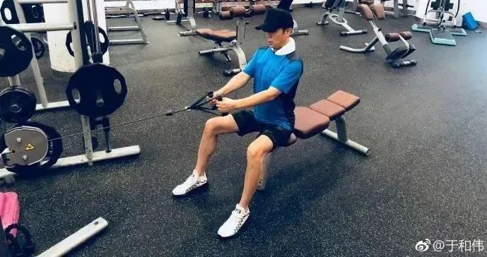 从他的微博我们可以了解到,他经常会去健身房练深蹲练卧推,练各种器械。