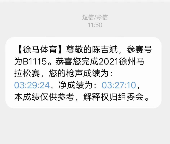 2021年徐州马拉松3:27:10