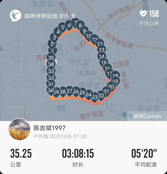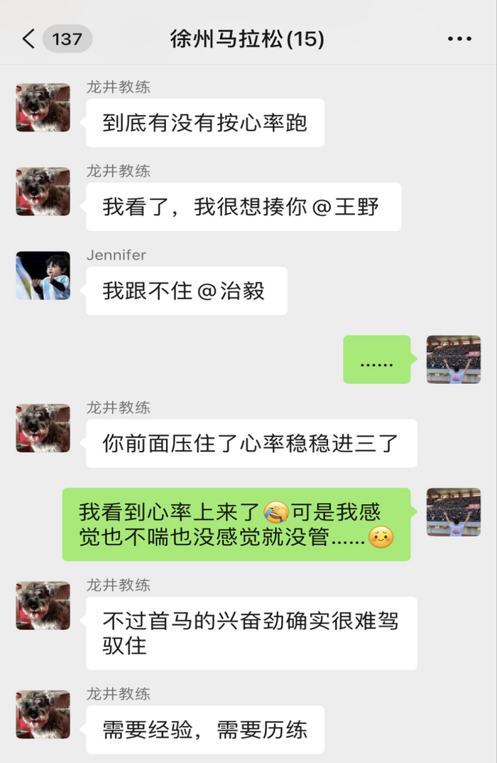 我认为自己是一个严肃跑者,完成了至少95%的课表,前12周100%完成。过年在东北老家零下20多度、北京的大风天气都没能停下过我的脚步。唯一不按照教练的指导应该就是在徐州的比赛,哈哈哈。