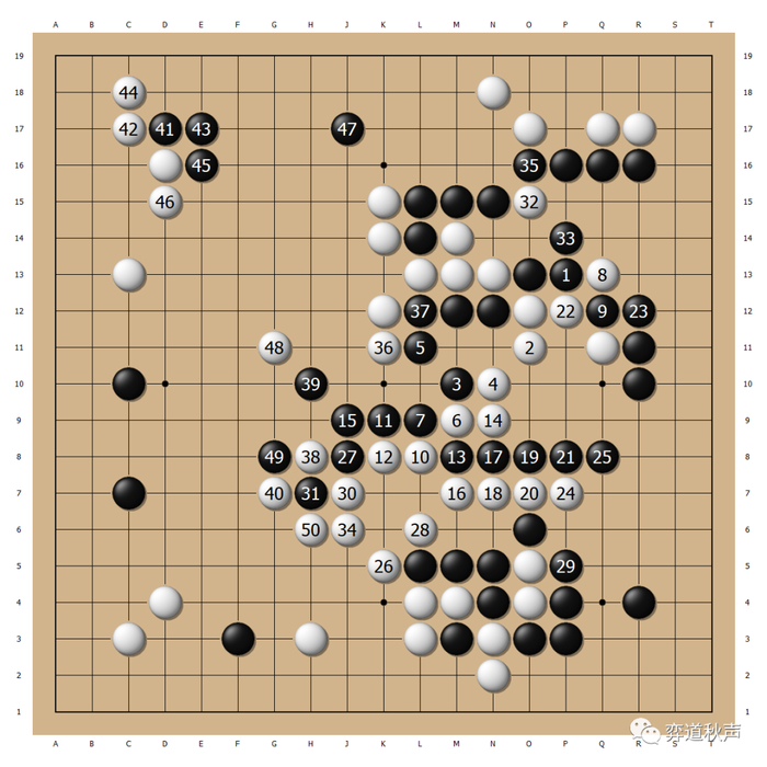 许家元求活不成,反杀黑棋也无法如愿,黑49后玉碎。