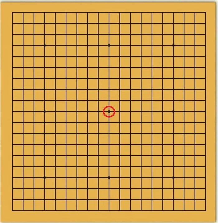 不过话说回来,尧发明围棋的本质是将星位图扩大,而星位图中心的“北极星”点位,也就是现在的“天元”,是最重要且一定不能少的。可只要画出“天元”这一重要点位,那么纵横便一定会各有一条初始线,而后无论增加多少条线路,只要是形成点位连接的闭环,则线路数一定会以偶数增加,这便符合数学中的“任何偶数加1,都是奇数”的定理。