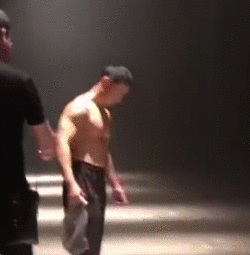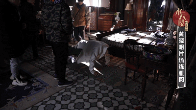即使是在片场拍戏,也不忘来几组俯卧撑使肌肉充血,让胸肌更有型!