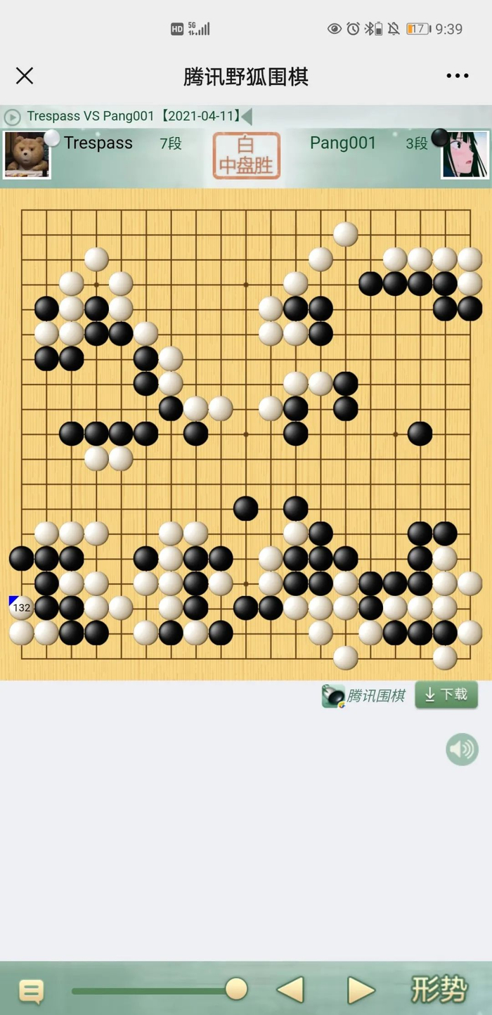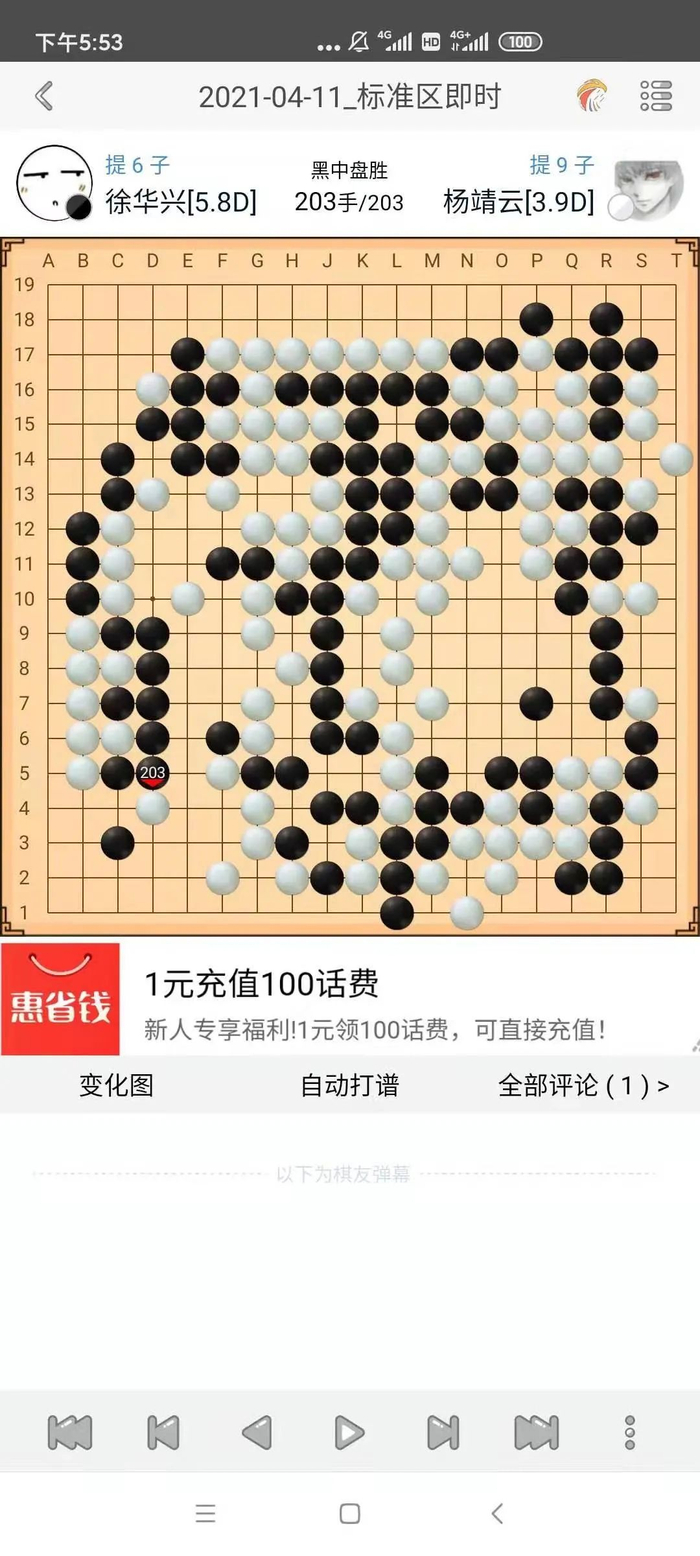 这样,这场比赛的悬念就都寄托在了第二台上,这盘棋同样跌宕起伏。虽然王蓬睿前半盘出现误算,被对手吃掉大块,但是形式意外的还能下(菜鸡领队居然以为一哥早就没了,确实不会下棋)。在后面的战斗中,对手可能是优势心里的影响,出现了许多失误,最后一哥稳稳拿下了这局。