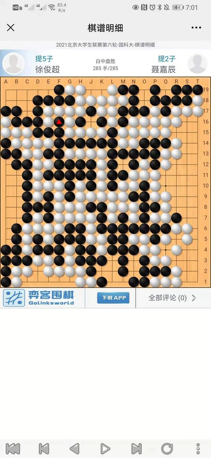 第一台的比赛,由于双方都不在北京,所以约的是线上解决,结果是高嘉欣取胜。以下是高嘉欣6段的棋评: