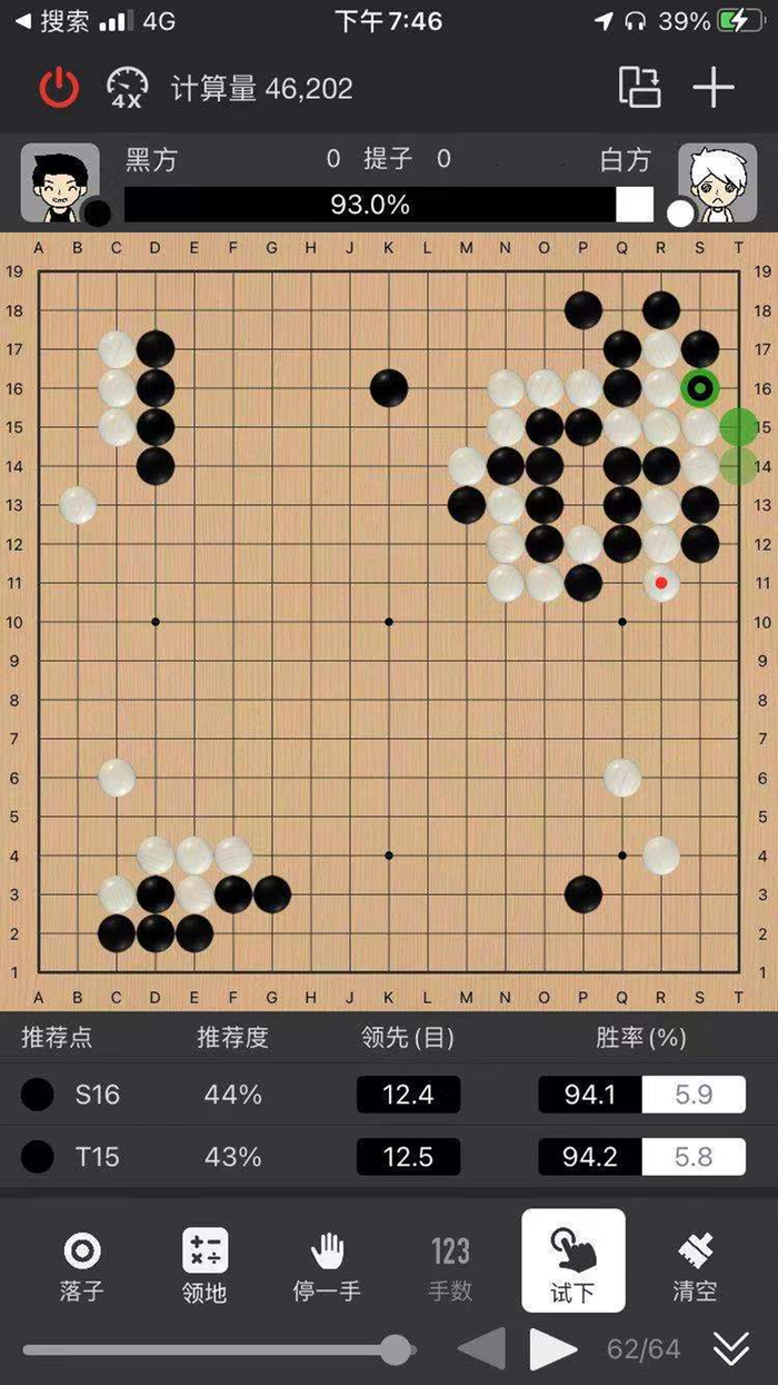 主将台由首经贸外援刘新语对阵贸大强力新生万全,比赛地点在新巨家里。这是一场典型的功夫棋大战,前期双方布局平稳,但新巨前面一个局部处理不当,导致亏损巨大,直接接龙。此后,万全的棋变得更加平稳,新巨虽极力追赶,但无奈万佬的每步棋都几乎命中星阵一二选,保持住了前期取得的优势。新巨在官子阶段贴不出目,无奈告负(ps:万佬面棋一选吻合度77 实在tql)