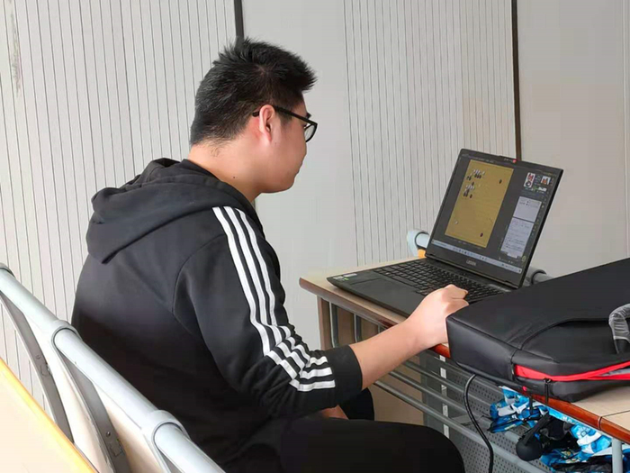 本轮比赛的快棋台出现了小状况。因为手机计时原因,矿大选手未注意到时间,早早丢掉了比分。