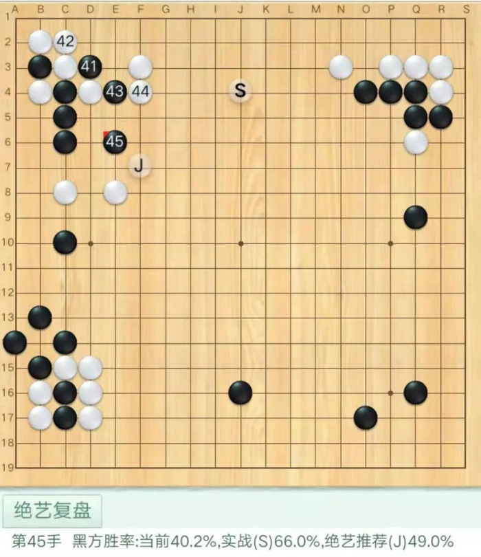 白棋40失误,应该如下图轻灵处理