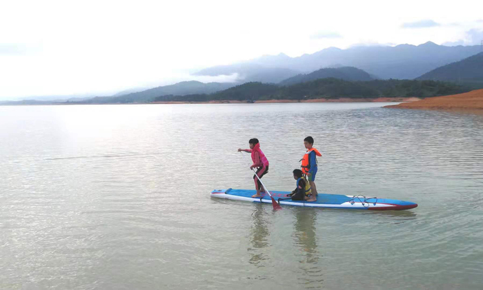 桨板操作简单、玩法多样,躺着、趴着、跪着、站着、坐着,随时可以跳下水游弋在水中。正是由于其高参与度、低门槛的特性,即便是零基础在教练的指导下也可以立刻上手,参与桨板运动的人群可以从小孩到老人,甚至你家里的宠物猫狗也可以一起游玩。通过桨板,孩子将感受江河湖泊、山川美景的独特魅力。