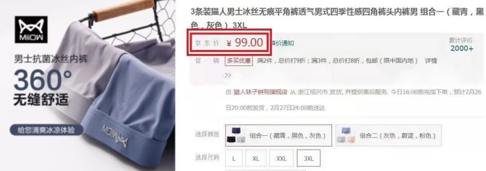 裸奔体验!猫人男女款抗菌冰感内裤,首发特价69元/4件
