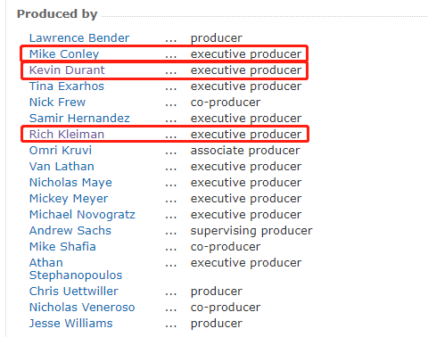 此前体育大生意曾撰文介绍过影视娱乐行业是近些年球员跨界趋势,从参演影视作品再到投资,不乏有人如同杜兰特一样成为令人称道的制片人,这其中还包括詹姆斯、科比。作为制片人的他们,因为制片人属性不同所担任的职责不同。而通过影视作品,球星们除获得商业回报外,还包括通过此表达意见以及扩大自身影响力等。