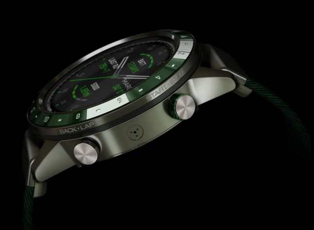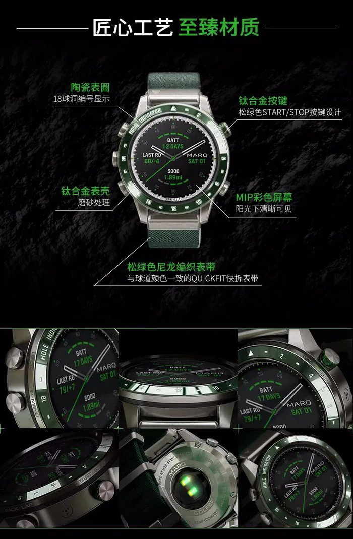 这是佳明MARQ系列的第七款全新腕表产品。MARQ Golfer在高尔夫功能上堪称品牌此前产品的集大成者,预装有全球4万1000多幅高尔夫球场地图、可以记录击球数据并整合为个人高尔夫大数据;同时采用高端钛合金机身、46毫米陶瓷表圈、独特高尔夫18洞蚀刻标记以及松绿色提花编织尼龙表带,外观设计全面看齐高端奢侈表款,更接近高尔夫人群对机械表的偏爱。