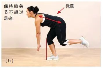 2.保持背部直立状态下缓慢进行髋屈曲,并在计数至“2”的过程中使用对侧手触碰地面。