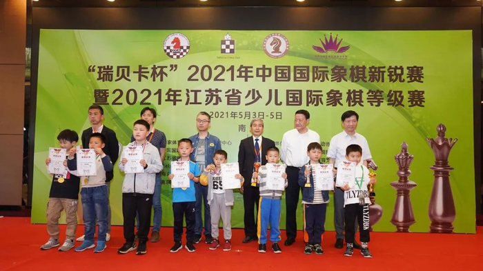 与新锐赛一起,2021年江苏省少儿国际象棋等级赛也同时举办。闭幕式上,与会领导和嘉宾为获奖棋手颁奖。