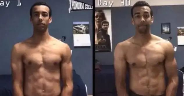 最后,来看他30天前后身材的改变
