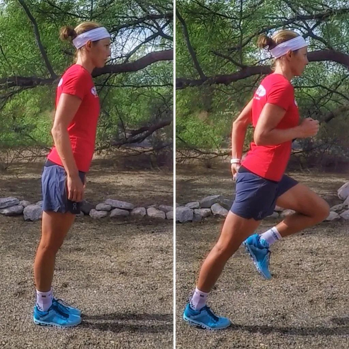 着地时保持膝关节充分弯曲着地点靠近重心是合理跑姿的重要特征