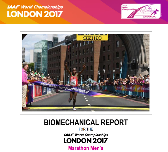 在国际田联(IAAF)官网的研究中心(Research Centre)网页,可以查阅重大比赛精英运动员的技术分析报告,我们下载了2017年伦敦田径世锦赛男子马拉松比赛的技术分析报告,通过这个报告,我们可以了解当今最顶尖马拉松运动员的跑步技术特征。