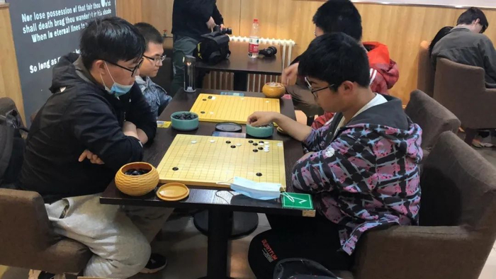 首先在北交校外的咖啡馆进行了后三台的比赛。最先结束的是第四台新人李子翔执白对史优杨。白棋开局误算,陷入败势,随后虽然白棋奋力拼搏,但是黑棋稳健运行,白棋却有不少失误,差距越来越大。但是中盘战末尾黑棋打了一个瞎将,白棋敏锐地抓住机会,在上方形成了打劫杀,但是白棋最后在读秒的催促下未能下出最佳,功败垂成。