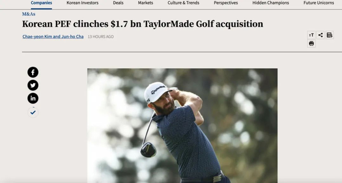 高尔夫球具史上最大交易!泰勒梅17亿美元被韩国财团收购