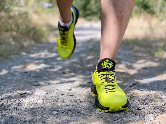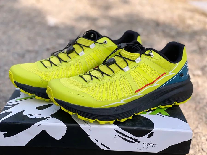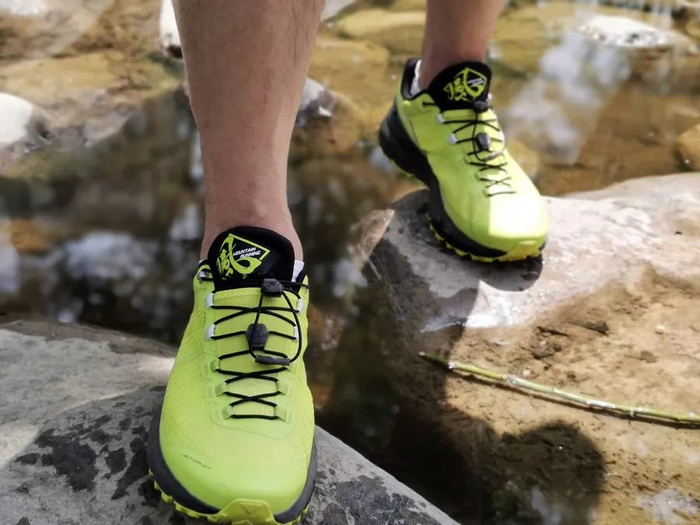 FUGA EX(疾如风 )为艳丽的荧光黄配色,穿上后在人群中突出,轻快,亮眼,这也是越野跑人的活力所在,跑起来的时候就给人一种个性鲜明的感觉,颜值不错,也十分上相。