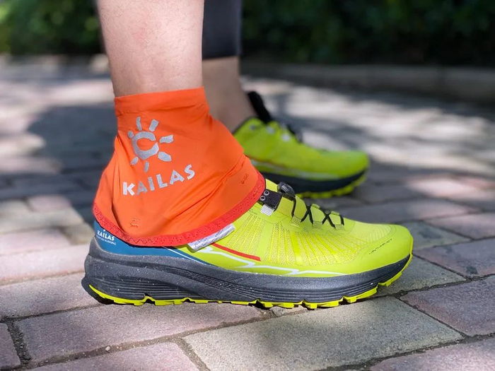 凯乐石独创的四点固定沙套结构,可挂载凯乐石专属防沙套,能有效固定防尘沙套,避免砂石进入鞋中导致的磨泡现象或是不断停下倒砂石的尴尬处境,加上贝壳扣固定,不仅不易脱落,更能有效防止泥石进入鞋内。